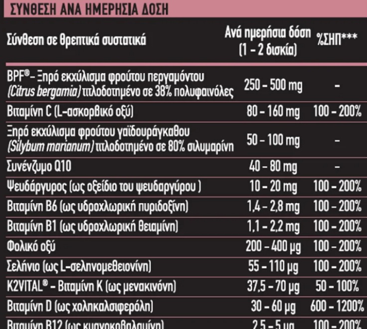 Ανά ημερήσια δόση (1 – 2 δισκία) |