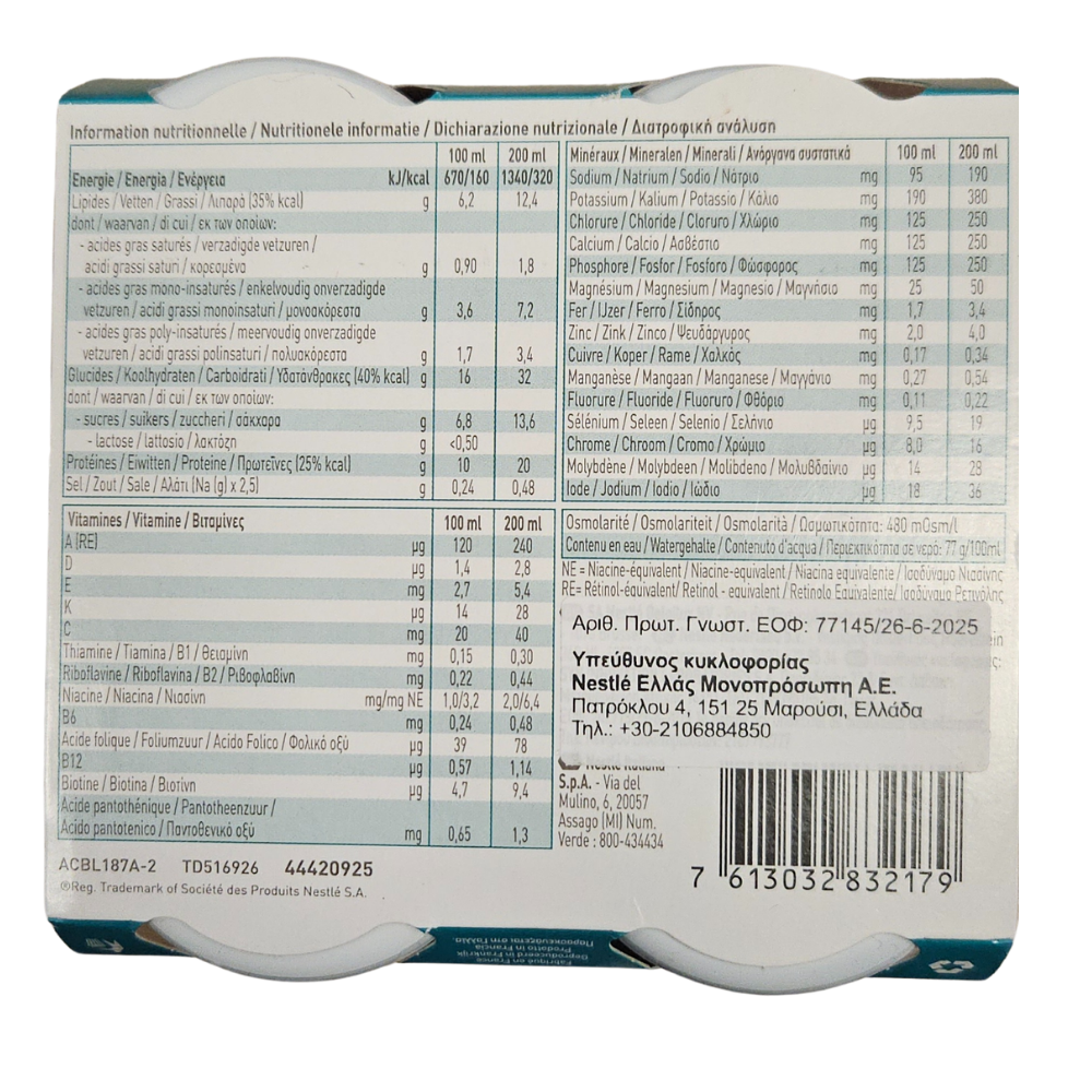 Το NESTLE RESOURCE HP/HC Vanilla είναι ένα ειδικά σχεδιασμένο συμπλήρωμα διατροφής για άτομα με αυξημένες ανάγκες σε πρωτεΐνη και θερμίδες. Κάθε μερίδα 200ml παρέχει 20g πρωτεΐνης υψηλής ποιότητας και 320kcal, συμβάλλοντας στην κάλυψη των ενεργειακών αναγκών και στη διαχείριση υποσιτισμού ή περιορισμών υγρών. Είναι κατάλληλο για γηριατρικούς ασθενείς, για άτομα σε υποθρεψία και για νευρολογικά περιστατικά που χρειάζονται συμπληρωματική διατροφική υποστήριξη, καθώς και για ασθενείς με δυσκολία στη μάσηση ή την κατάποση ή με βλάβες στη στοματική κοιλότητα. Μπορεί να χρησιμοποιηθεί σε οξείες ή χρόνιες καταστάσεις, όπως έλκη κατακλίσεως, σοβαρούς εγκαυματισμούς, τραύματα ή μετά από χειρουργικές επεμβάσεις, υποστηρίζοντας την αποκατάσταση και την ανάρρωση. Είναι ελεύθερο γλουτένης και κλινικά ελεύθερο λακτόζης.